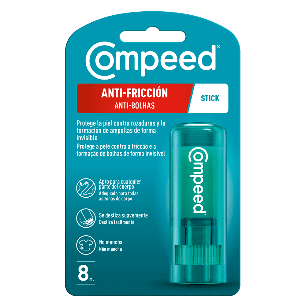 O Stick Compeed® Anti-Bolhas reduz instantaneamente a fricção sobre a pele, ajudando a prevenir a formação de bolhas. É fácil de aplicar e não suja.